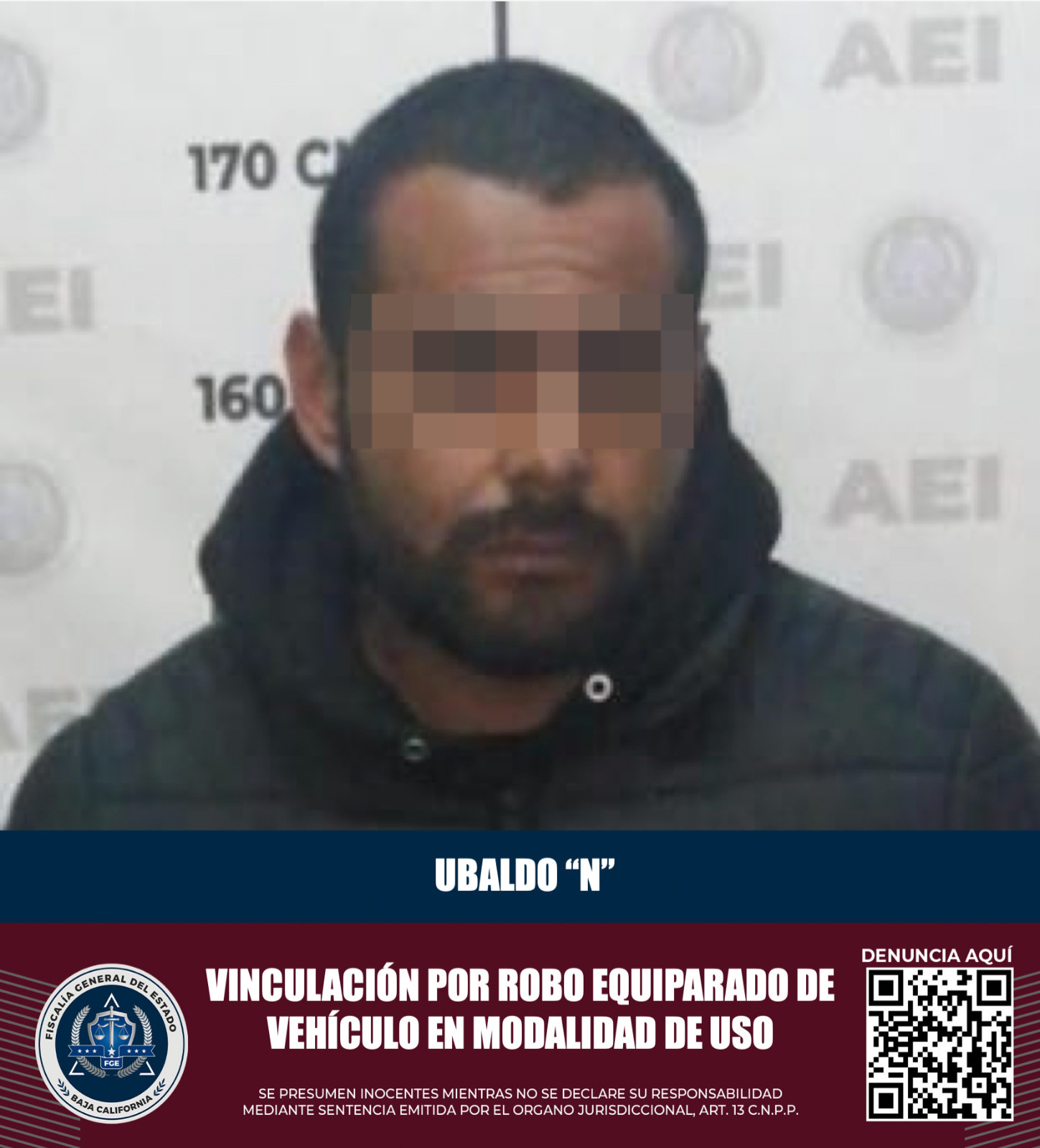 La detención del imputado Ubaldo “N” sucedió el 9 de febrero del año en curso, a las 21:00 horas en el kilómetro 40 de la carretera federal Ensenada- Ojos Negros, debido a que conducía un vehículo con reporte de robo.