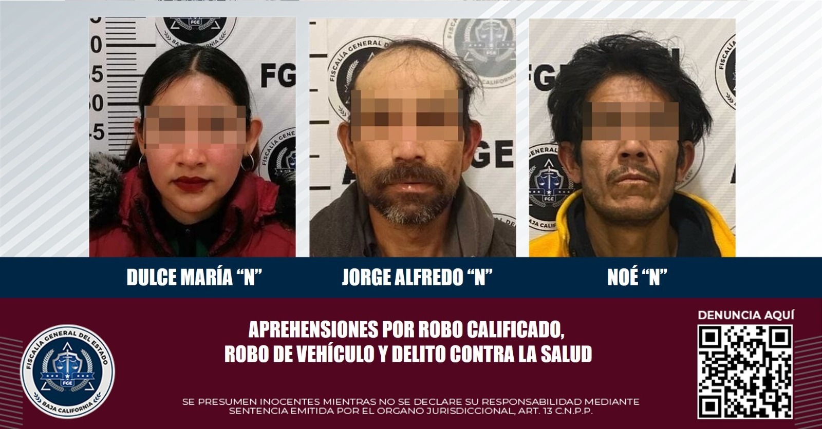 TIJUANA, B.C. La Agencia Estatal de Investigación (AEI), de la Fiscalía General del Estado (FGE), ha logrado la captura de tres personas que contaban con orden de aprehensión, siendo una mujer y dos hombres.