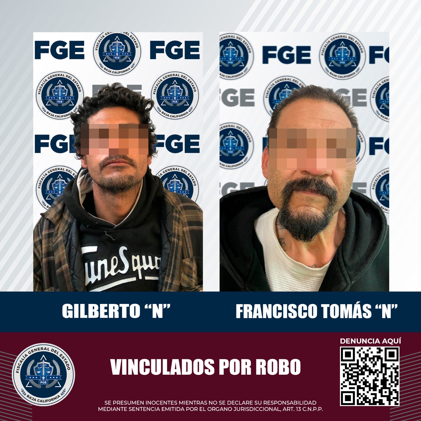 MEXICALI, B.C. Después de presentar la carpeta de investigación con elementos sólidos, la Fiscalía Regional de Mexicali, a través de las Unidades de Investigación con Detenidos Poniente y Robos Poniente, logró la vinculación a proceso de dos hombres relacionados en hurtos.