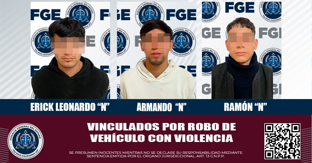 MEXICALI, B.C. Tres jóvenes relacionados en el robo con violencia de una camioneta Honda CRV modelo 2018, registrado el 12 de febrero en el fraccionamiento Las Palmas, fueron vinculados a proceso con base al trabajo realizado por la Fiscalía Regional de Mexicali.