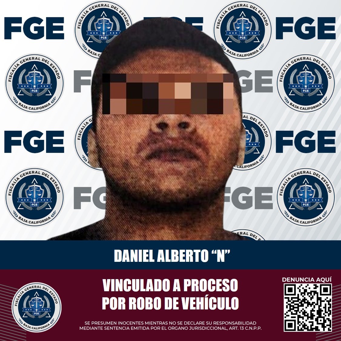 TIJUANA, B.C. Con las pruebas aportadas por la Fiscalía Regional de Tijuana, un Juez de Control determinó la presunta responsabilidad de quien responde al nombre de Daniel Alberto “N”, en el delito de robo de vehículo de motor ejecutado con violencia.