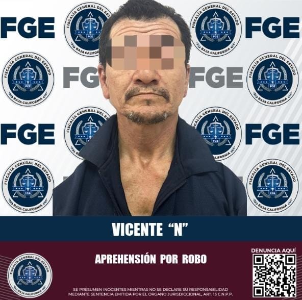 SAN QUINTÍN, B.C. Elementos de la Agencia Estatal de Investigación (AEI), en San Quintín, cumplimentaron una orden de aprehensión contra Vicente “N” por el delito de robo.