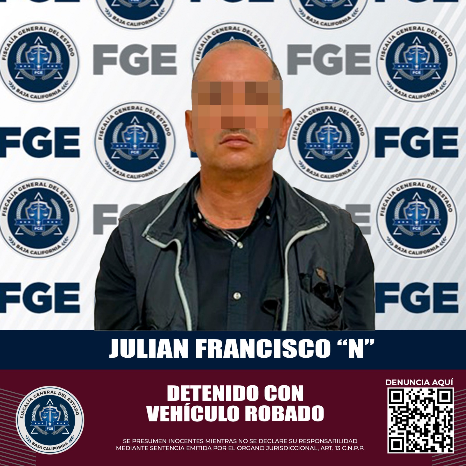 Los agentes observaron que la serie pública estaba movida de su lugar, al revisar la serie del motor confirmaron que contaba con reporte de robo del 8 de septiembre de 2022 en la ciudad de Tijuana, por lo anterior fue asegurado el conductor Julián Francisco “N”, quien quedó a disposición del agente del Ministerio Público.