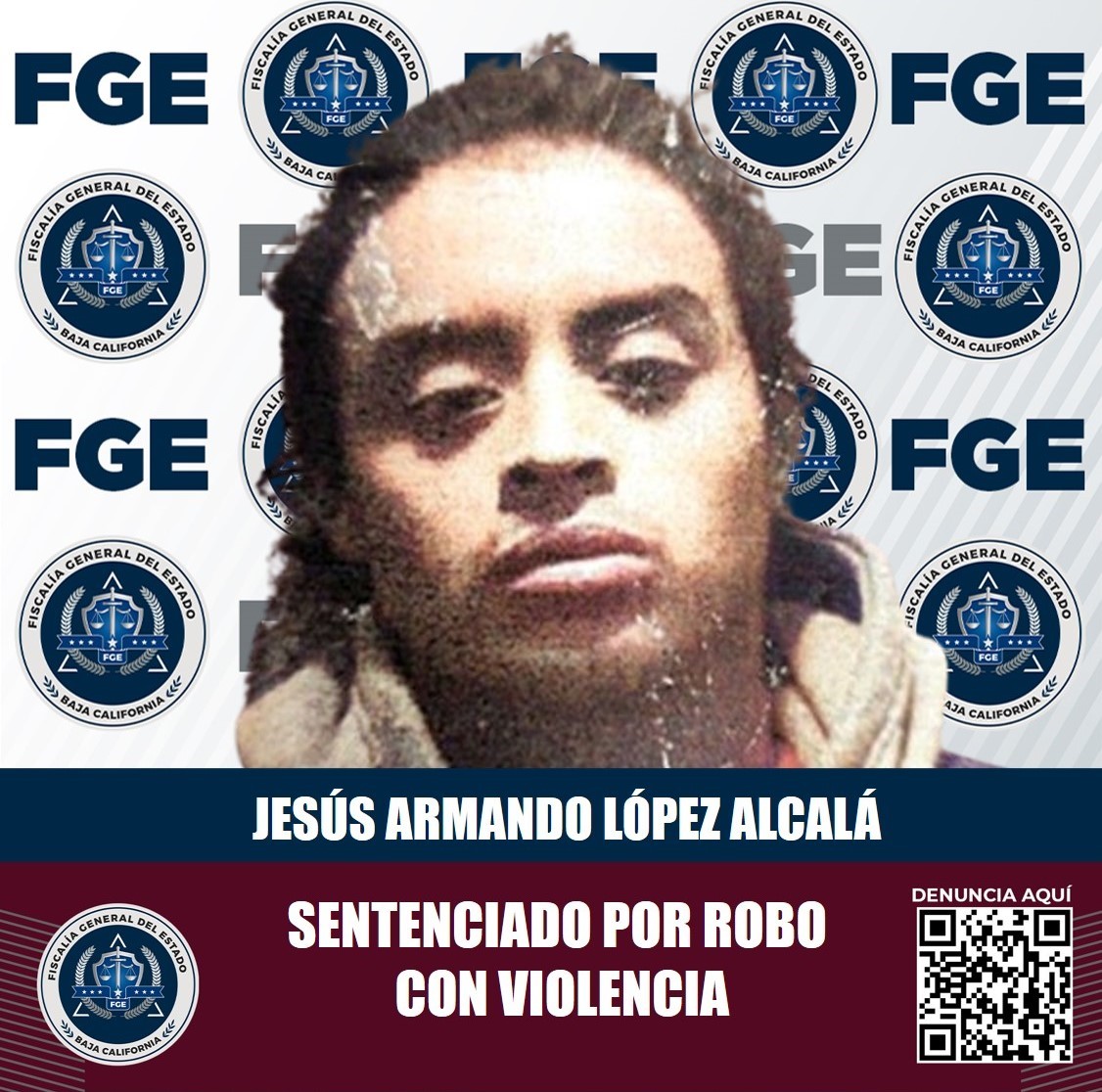 TIJUANA, B.C. La Fiscalía General del Estado, con las pruebas presentadas por el Ministerio Público, logró que se le impusiera pena de prisión de tres años y seis meses a Jesús Armando López Alcalá, quien resultó responsable del delito de robo con violencia.