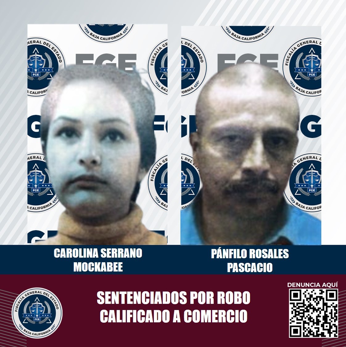 Mediante los datos de prueba recabados por la Unidad de Investigación de Robos La Mesa, se logró acreditar la responsabilidad penal de Carolina Serrano Mockabee y Pánfilo Rosales Pascacio, en el delito que la ley marca como robo calificado cometido a comercio abierto al público, ejecutado con violencia.