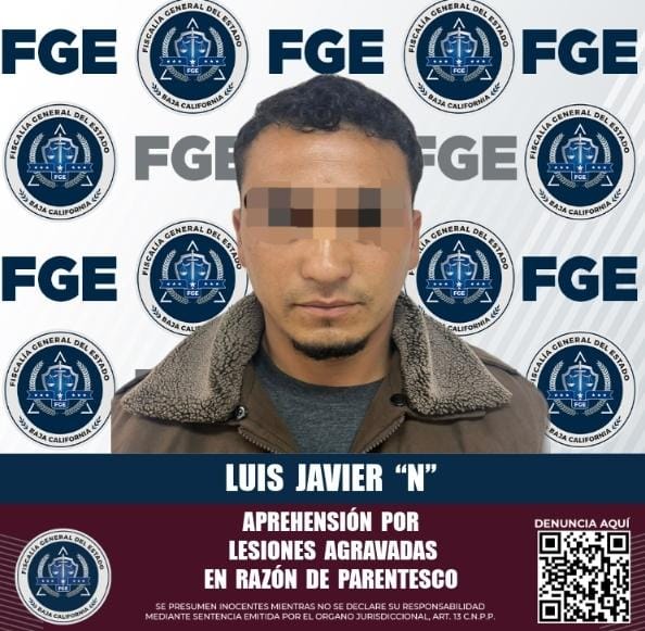 SAN QUINTÍN, B.C. Agentes de la Fiscalía General del Estado cumplimentaron la orden de aprehensión, por el delito de lesiones agravadas por razón de parentesco, en contra de Luis Javier “N”.
