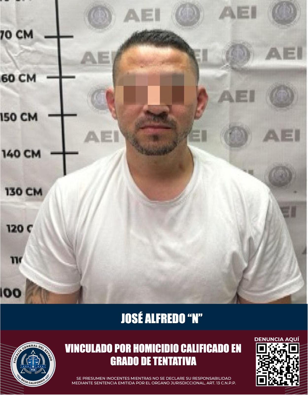 MEXICALI, B.C. La Fiscalía General del Estado, a través de la Fiscalía Especializada en Delitos Contra la Vida, logró la vinculación a proceso de José Alfredo “N”, por presuntamente cometer el delito de homicidio calificado en grado de tentativa.