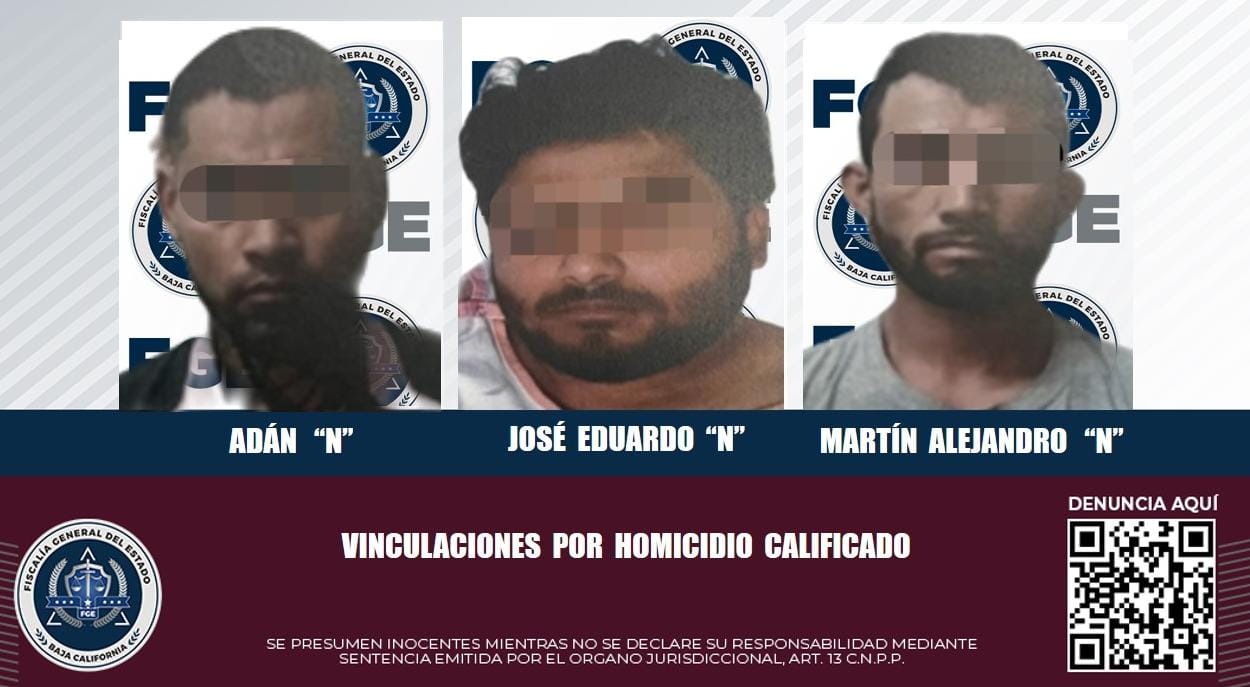 ENSENADA, B.C. La Fiscalía General del Estado (FGE), a través de la Fiscalía Especializada en Delitos Contra la Vida, logró auto de vinculación a proceso penal en contra de los presuntos homicidas, Adán “N”, Martín Alejandro “N” y José Eduardo “N”, de 33, 30 y 26 años de edad; se presume que golpearon y enterraron con vida a la víctima.