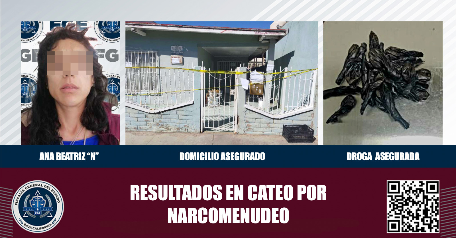 ENSENADA, B.C. La Fiscalía General del Estado, en Ensenada, realizó un cateo en una vivienda, donde se incautó droga y se detuvo a una persona. Además, se aseguró la propiedad donde se llevó a cabo la operatividad.
