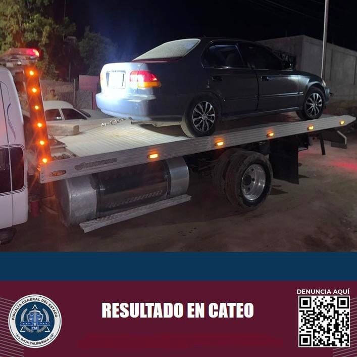 SAN QUINTÍN, B.C. Durante un cateo ejecutado por elementos de la Agencia Estatal de Investigación, se aseguró un sedán Honda Civic que contaba con reporte de robo.
