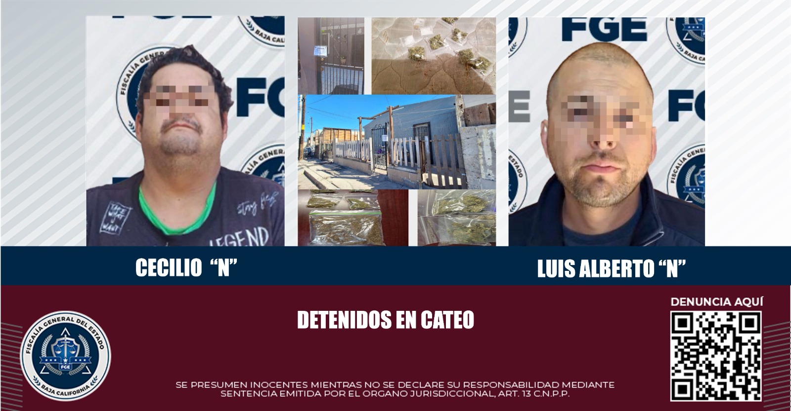 MEXICALI, B.C. La Fiscalía Especializada en Narcomenudeo zona Mexicali, a través del agente del Ministerio Público y la Agencia Estatal de Investigación, cumplimentó dos órdenes de cateo, en atención a denuncias anónimas.