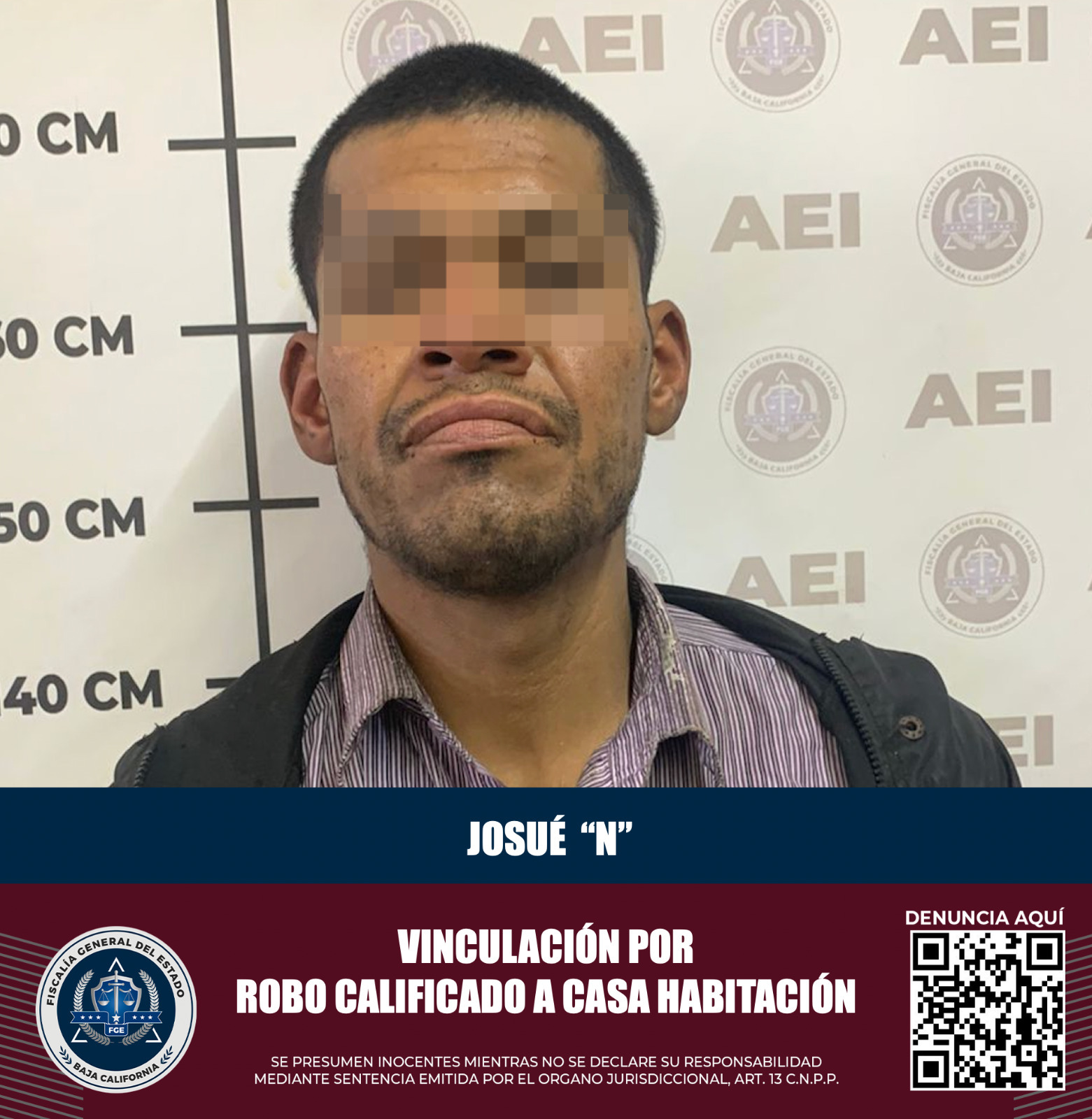 ENSENADA, B.C. La Fiscalía Regional de Ensenada logró la vinculación a proceso de un sujeto al que se le señala por su presunta participación en el robo cometido en una vivienda en el ex ejido Chapultepec, hecho por el cual se le ha impuesto medida cautelar de prisión preventiva.