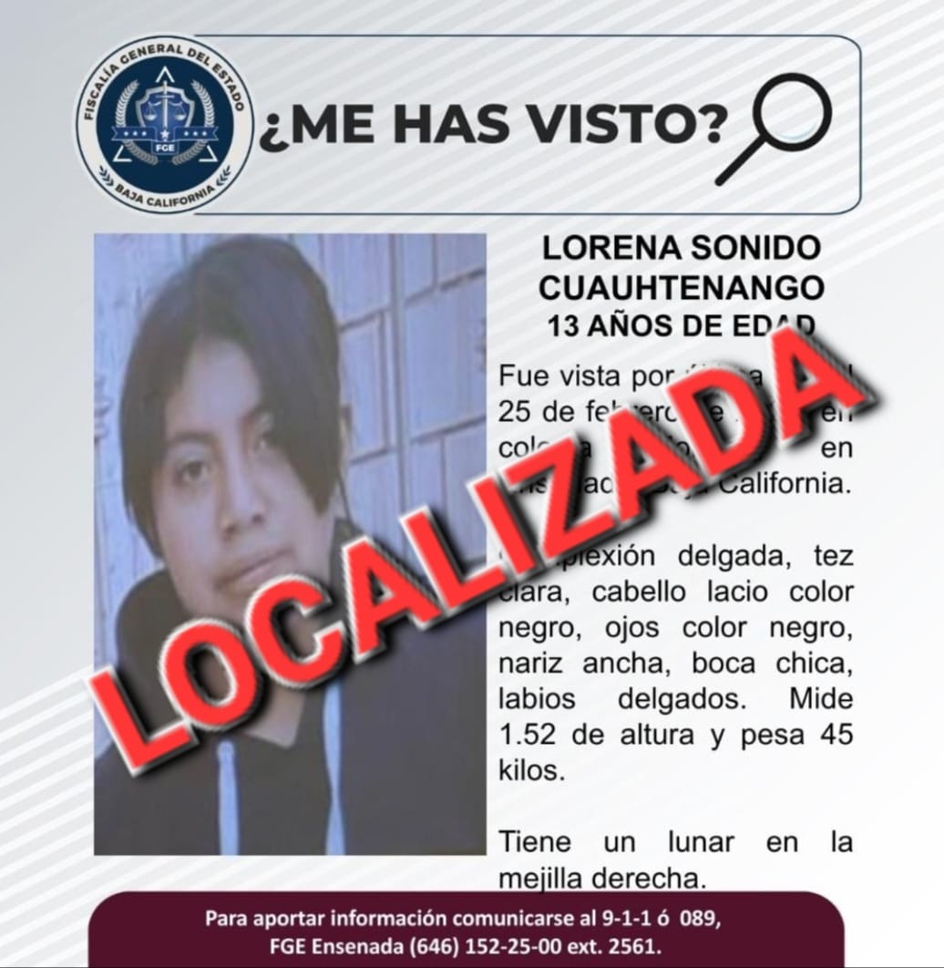 Por lo anterior, la FGE cancela las pesquisas generadas para la localización de: Lorena Sonido Cuauhtenango de 13 años de edad, Rosario Yadira Luna Santos de 31 años, y Ángel Gabriel Aparicio de 26 años de edad.