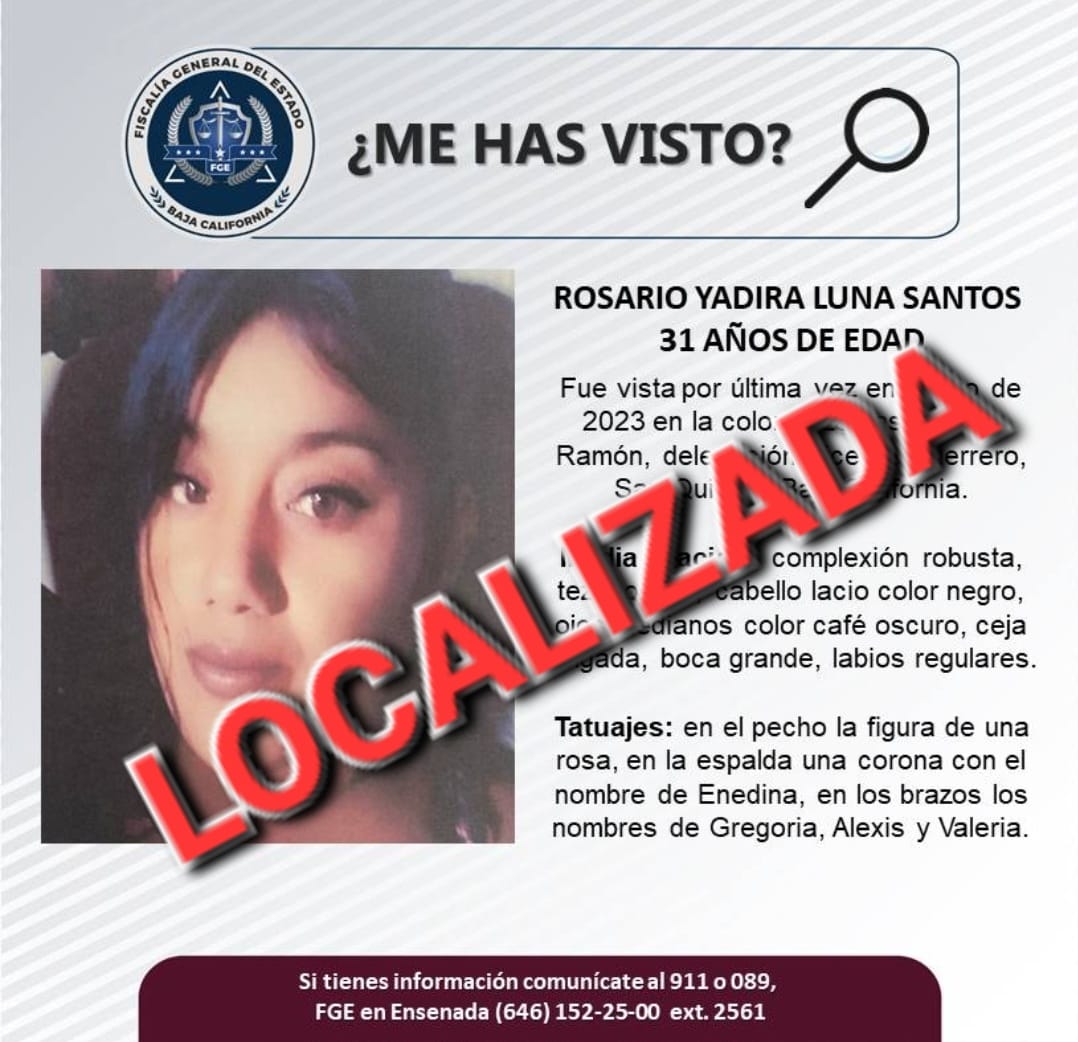 ENSENADA, B.C. Derivado del seguimiento a las pesquisas que la Unidad Especializada para la Investigación y Persecución de Delitos de Desaparición Forzada y Desaparición Cometida por Particulares de la Fiscalía General del Estado (FGE) lleva a cabo, se logró la localización tres personas que contaban con reporte de búsqueda.