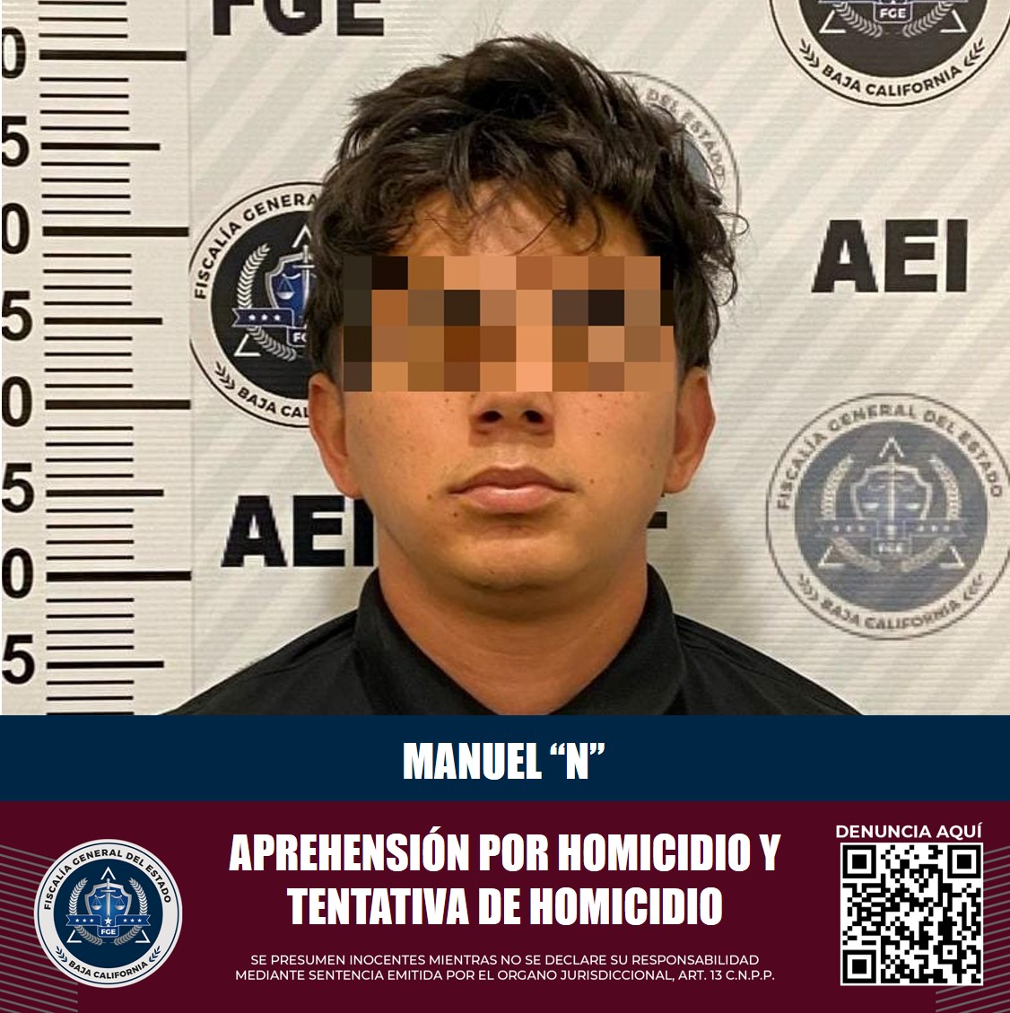 TIJUANA, B.C. Un sujeto señalado como presunto partícipe en el delito de homicidio y homicidio calificado en grado de tentativa, fue capturado por elementos de la Agencia Estatal de Investigación (AEI) en Tijuana, por contar con una orden de aprehensión en su contra, se trata de Manuel “N”, alias “el Mamu”.