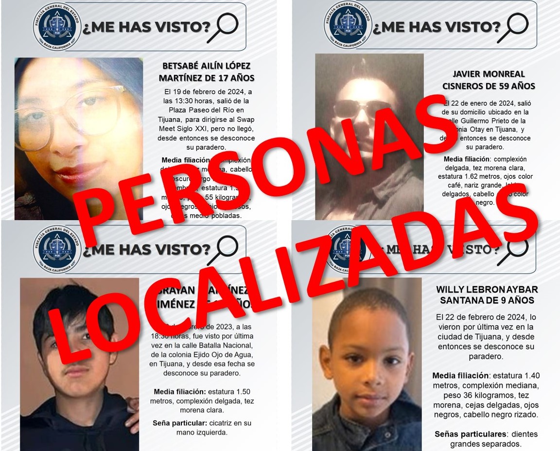 TIJUANA, B.C. El personal de la Fiscalía General del Estado ha logrado ubicar con bien a cuatro personas que habían sido reportadas como desaparecidas.