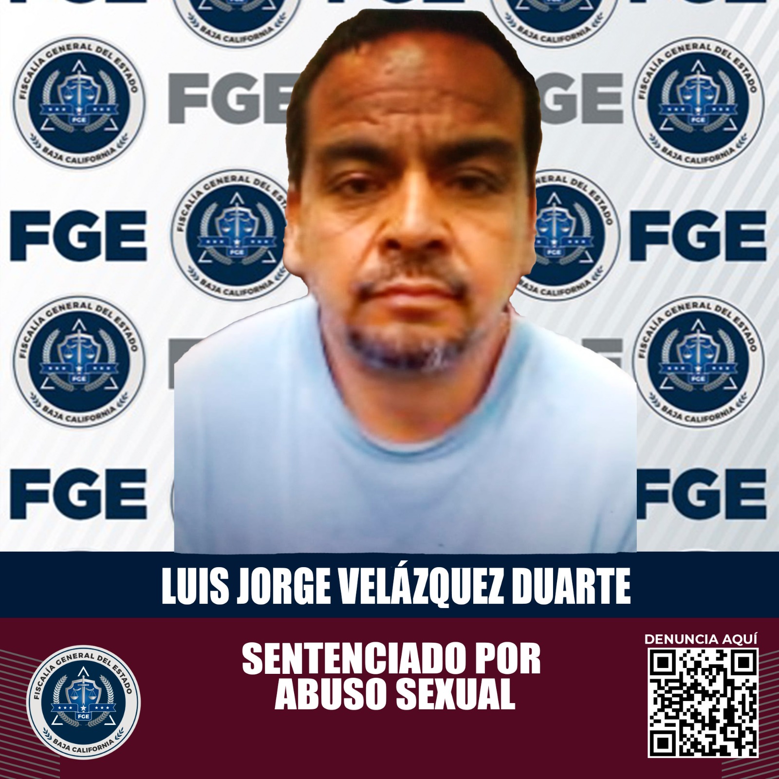 MEXICALI, B.C. Como parte del compromiso de la Fiscalía Regional de Mexicali de presentar carpetas de investigación sólidas, se logró un fallo condenatorio en contra de Luis Jorge Velázquez Duarte, acusado del delito de abuso sexual contra un menor de 14 años agravado por ser pariente consanguíneo.