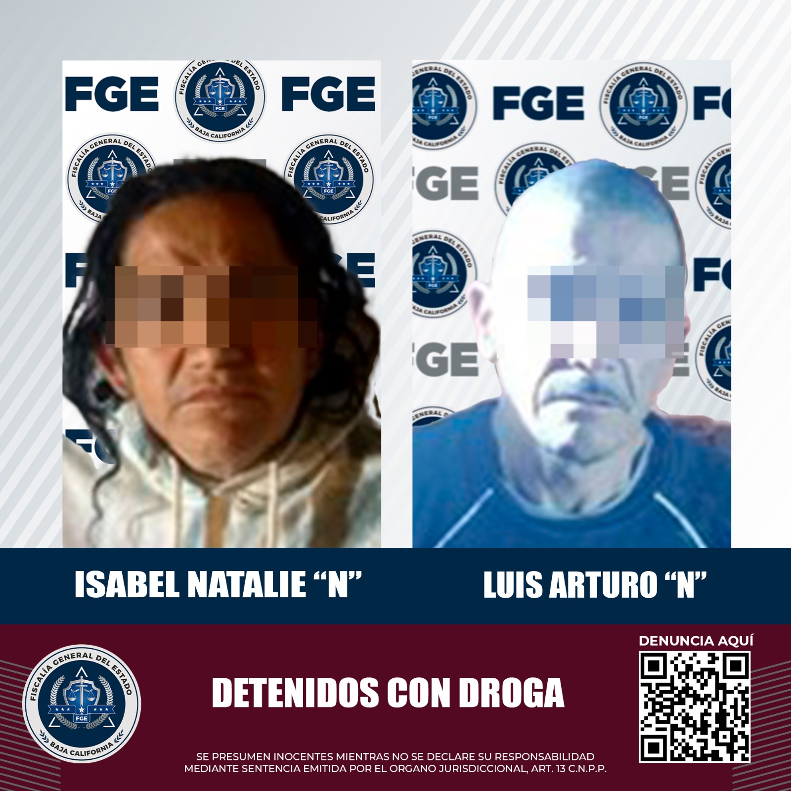 Por lo anterior, fueron detenidos Isabel Natalie “N” y Luis Arturo “N”, quienes al igual que la droga fueron trasladados a la Fiscalía Especializada a disposición del agente del Ministerio Público, quien determinará su situación jurídica.
