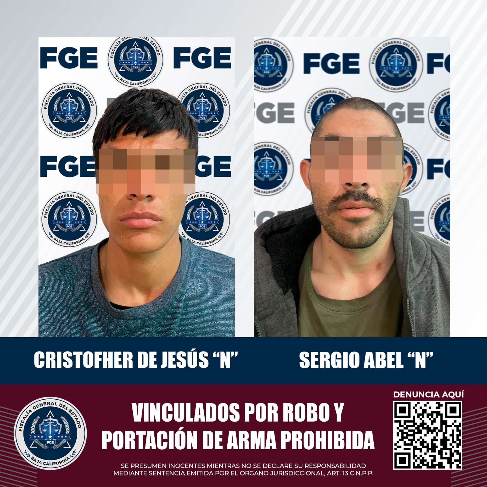 MEXICALI, B.C. La Fiscalía Regional de Mexicali, a través de la Unidad de Investigación con Detenidos Oriente, obtuvo la vinculación a proceso de dos individuos por los delitos de robo y portación de arma prohibida.