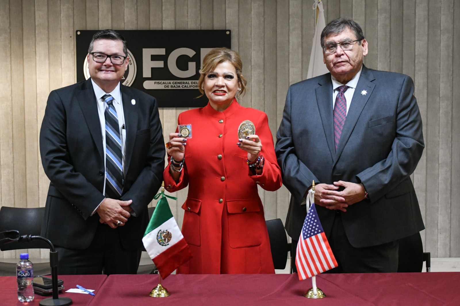 MEXICALI, B.C. Consolidar vínculos institucionales para fortalecer la seguridad en la frontera de México y Estados Unidos, fue el objetivo de la reunión que sostuvieron la Fiscal General Ma. Elena Andrade Ramírez y su homólogo de Valle Imperial, George Márquez.