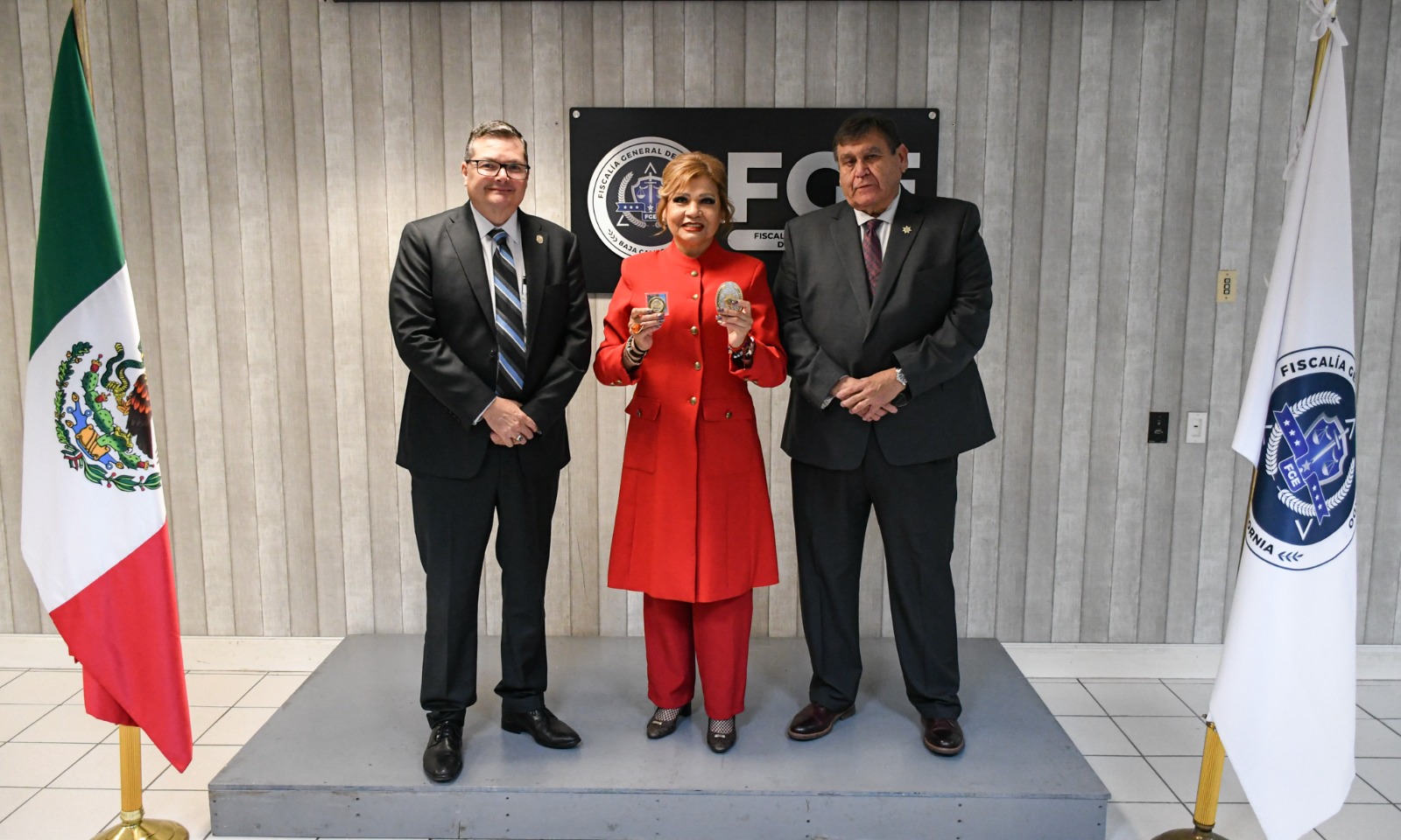 Por parte de la FGE, el Fiscal Central, Rafael Orozco Vargas; el Fiscal Regional de Mexicali, Rafael Cervantes Sánchez; el Comisionado de la Agencia Estatal de Investigación Hibael Suárez Osorio y el Coordinador de Delitos de Alto Impacto, Isaac José Páez Islas y el Comandante de la Agencia Estatal de Investigación en Mexicali, Gustavo Francisco Olivo Loroña.