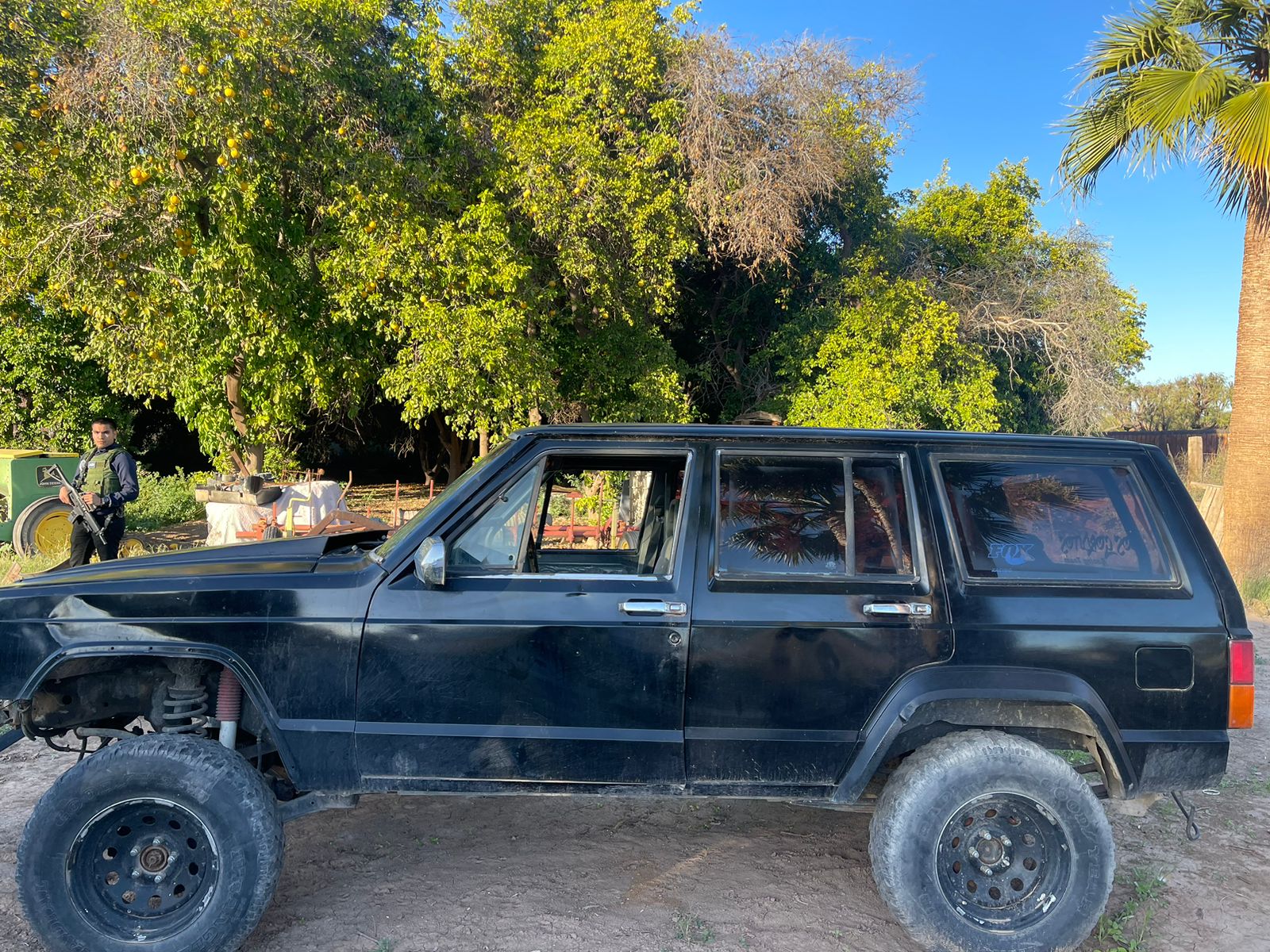 Por último, en una acción realizada en un predio del ejido Monterrey (Bataquez) del Valle de Mexicali, los agentes investigadores recuperaron una camioneta marca Jeep Cherokee, modelo 1988, color negro, placas de Baja California, con reporte de robo.