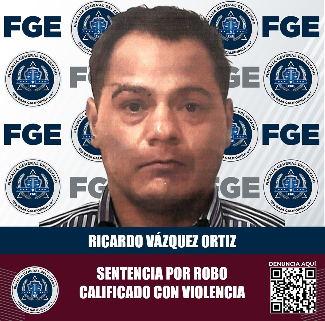 TIJUANA, B.C. La Fiscalía Regional de Tijuana, a través del agente del Ministerio Público de la Unidad de Investigación de Robos Zona Centro, acreditó ante un juez la plena responsabilidad de Ricardo Vázquez Ortiz en el delito de robo calificado cometido de noche ejecutado con violencia, obteniendo una sentencia de 3 años y 8 meses de prisión.