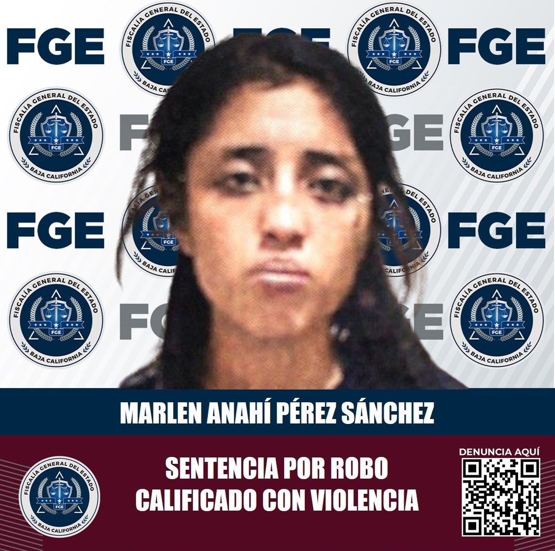 En la audiencia de procedimiento abreviado ante el Juez de Control del Partido Judicial de Tijuana, la Fiscalía Regional presentó argumentos lógicos, jurídicos y pruebas que llevaron a la sentencia de 3 años y 8 meses de prisión para Marlen Anahí Pérez Sánchez por su participación en el delito de robo calificado con violencia.