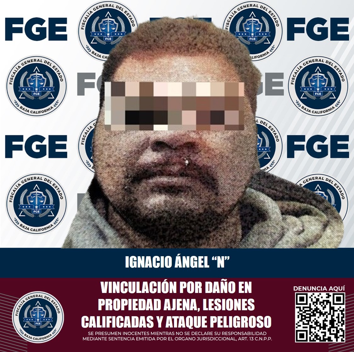 TECATE, B.C. La Fiscalía Regional de Tecate, a través del agente del Ministerio Público, presentó en audiencia elementos de prueba para que Ignacio Ángel “N” quedara vinculado a proceso penal por los delitos de daño en propiedad ajena intencional, lesiones calificadas y ataque peligroso.