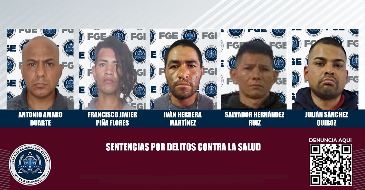 TIJUANA, B.C. La Fiscalía General del Estado informa que, en cinco diferentes casos relacionados con narcomenudeo, igual número de imputados han recibido sentencia por su participación en esta modalidad de delito contra la salud.