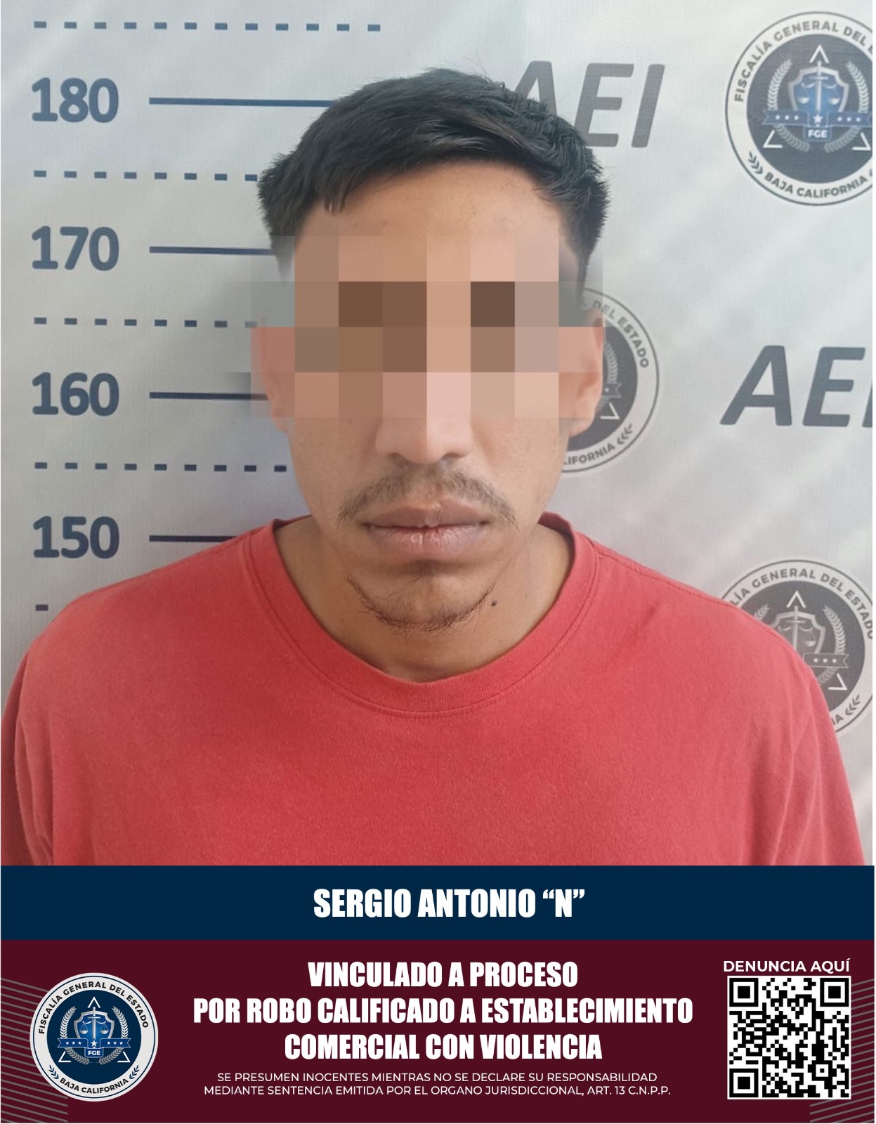 MEXICALI, B.C. La Fiscalía General del Estado, a través de la Unidad de Robos Poniente zona Mexicali y gracias al trabajo de investigación realizado para la integración de la carpeta de investigación, obtuvo la vinculación a proceso de Sergio Antonio “N”, alias “El Tacua”.