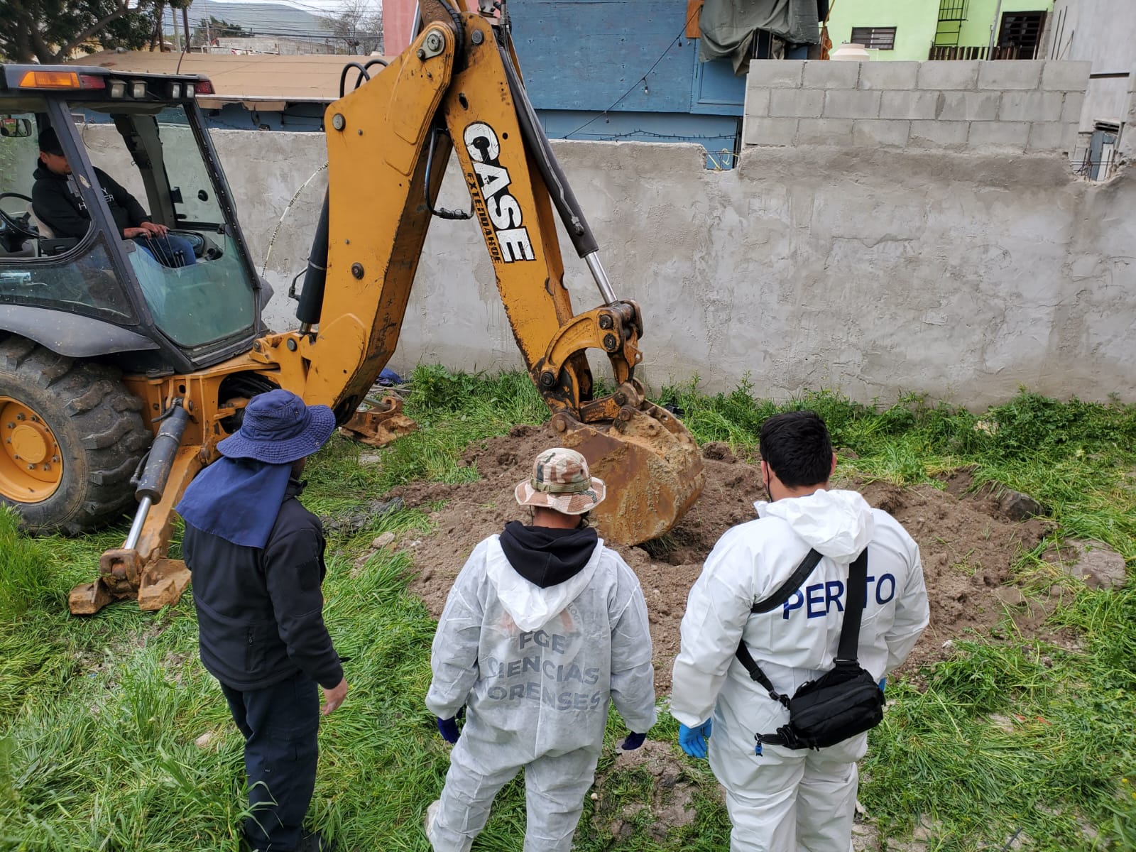 El terreno, de suelo terrizo y sin edificaciones, presentaba vegetación baja, como pequeñas ramas de árboles y arbustos, donde el equipo de Servicios Periciales inició la búsqueda de indicios para determinar los puntos de inicio de excavación con maquinaria.