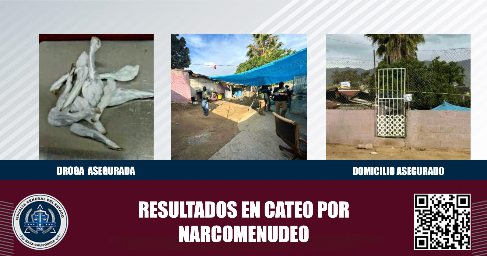 ENSENADA, B.C. En el marco de investigaciones por el delito de narcomenudeo, la Fiscalía General del Estado (FGE) ejecutó una orden de cateo en un domicilio e incautó droga.