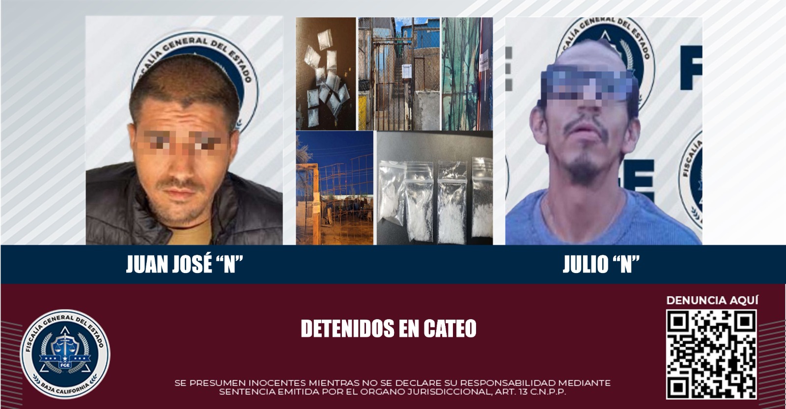 MEXICALI, B.C. En atención a denuncias anónimas, elementos de la Agencia Estatal de Investigación de la Fiscalía Especializada en Narcomenudeo, Zona Mexicali, cumplimentaron dos órdenes de cateo.