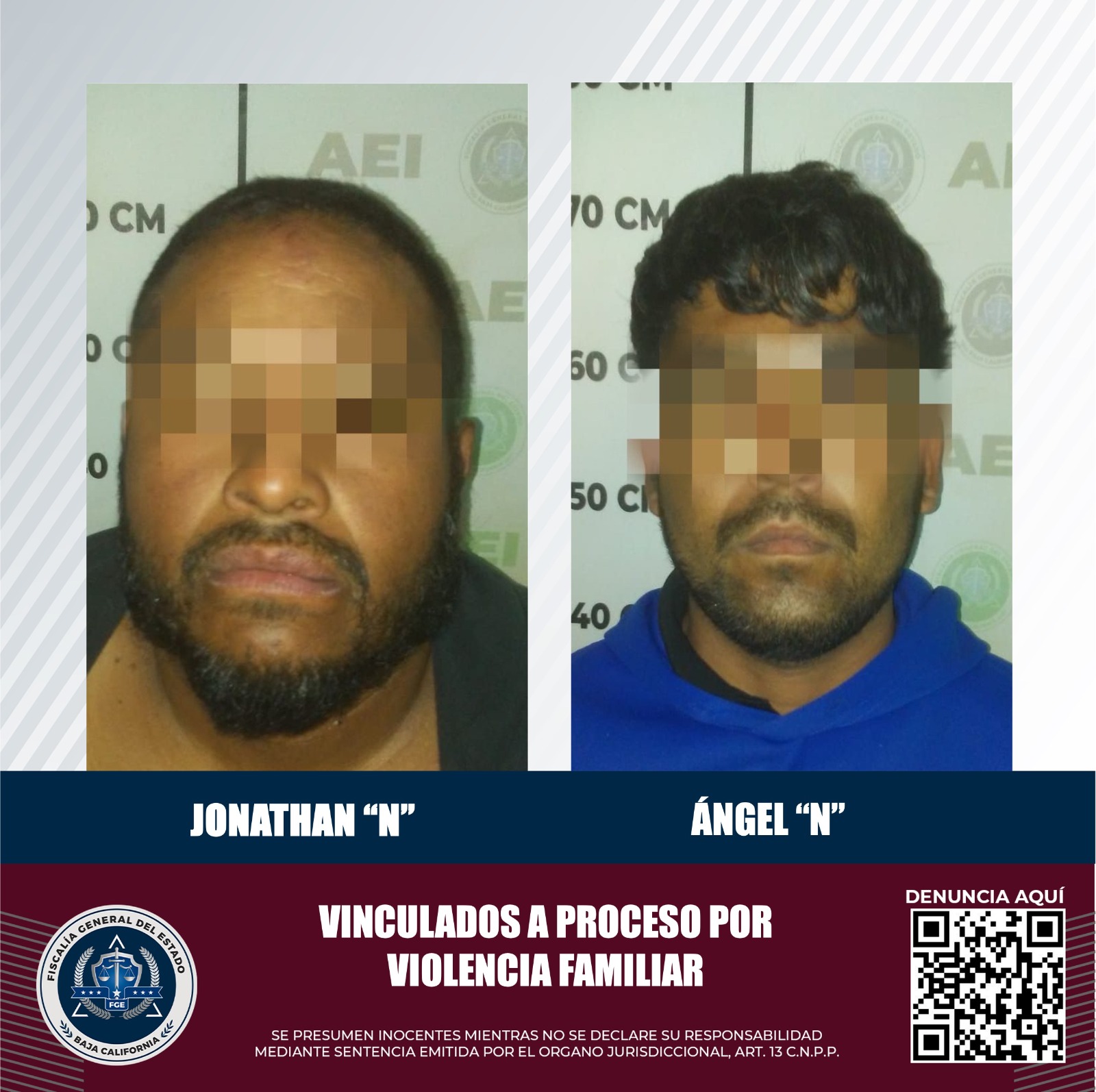 MEXICALI, B.C. La Fiscalía Regional de Mexicali, mediante el trabajo realizado por agentes del Ministerio Público, obtuvo, en casos distintos, la vinculación a proceso de dos sujetos por el delito de violencia familiar.