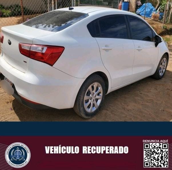Tras descender de las unidades y acercarse al sedán marca Kia Río, modelo 2014, color blanco, con placas del estado de California, se percataron que coincidía con las características de una unidad reportada previamente como robada.