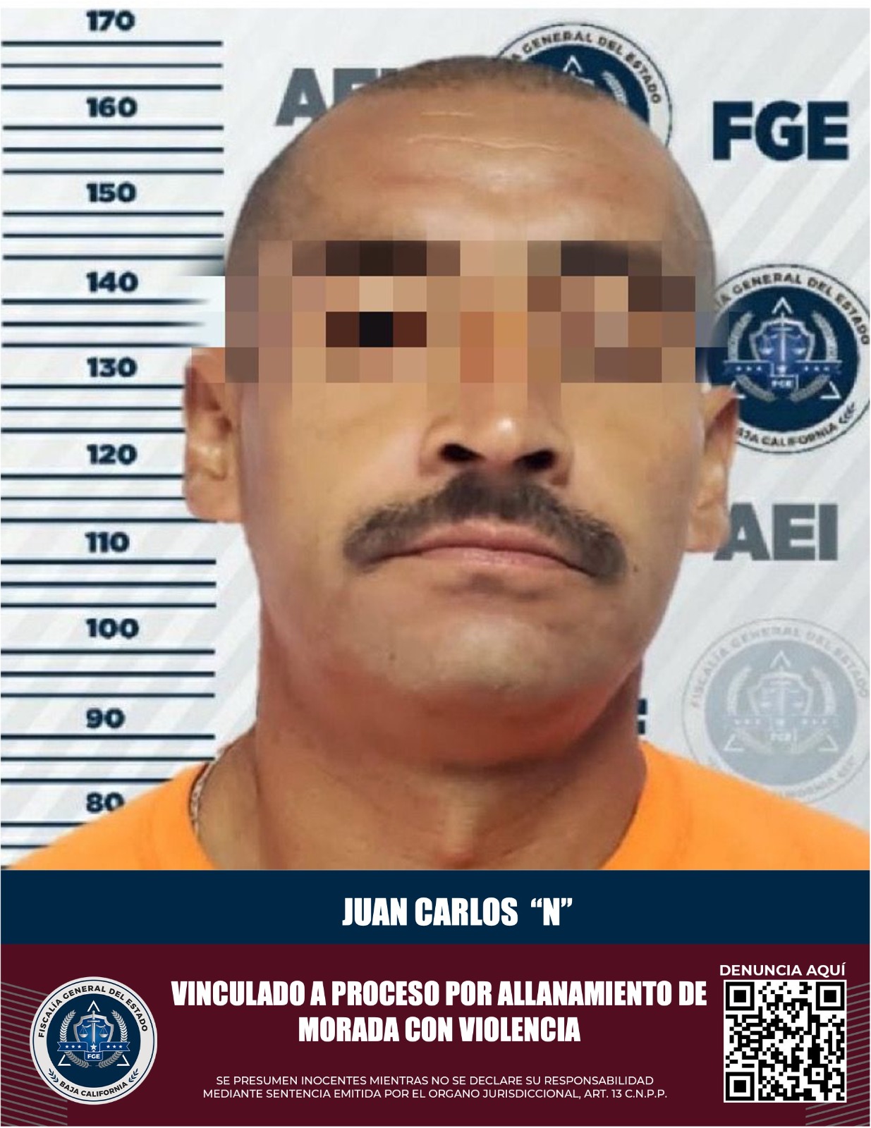 MEXICALI, B.C. La Unidad de Investigación Foránea de Ciudad Morelos, de la Fiscalía General del Estado, obtuvo la vinculación a proceso de Juan Carlos “N”, quien presuntamente cometió el delito de allanamiento de morada.