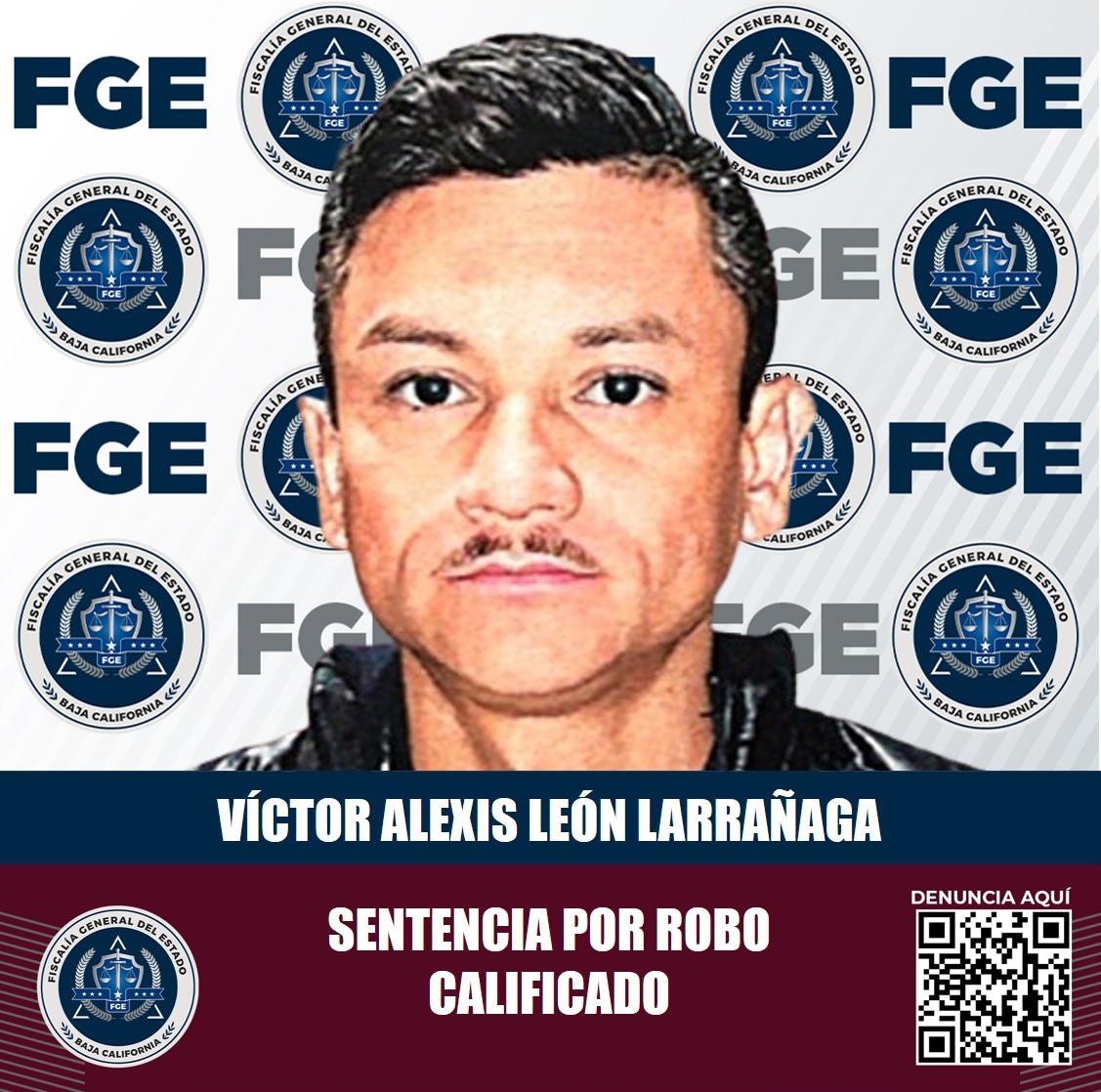 TIJUANA, B.C. Tras una investigación realizada por la Fiscalía Regional de Tijuana, a través de la Unidad de Investigación de Robos Zona Centro, se dictó sentencia de 3 años y 8 meses contra Víctor Alexis León Larrañaga por el delito de robo calificado a un establecimiento comercial abierto al público, cometido con violencia.