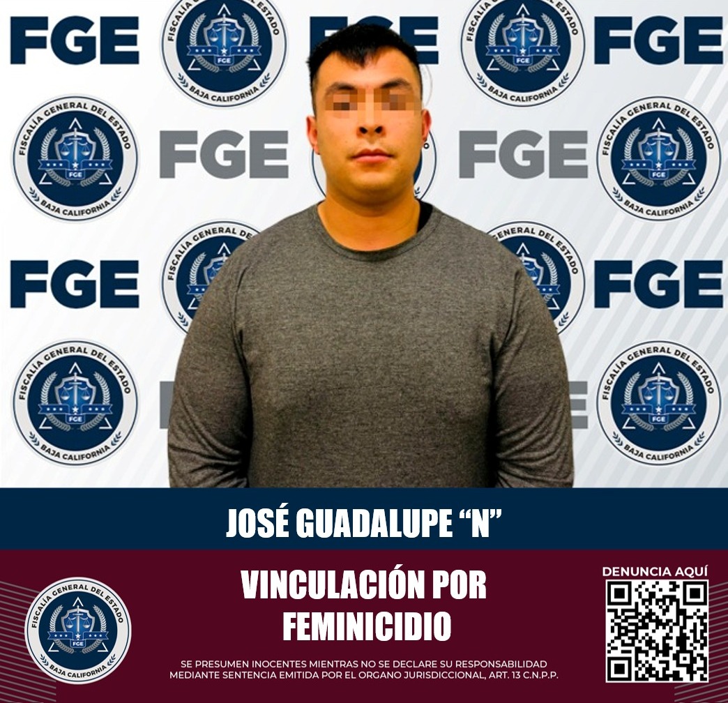 TIJUANA, B.C. La Fiscalía General del Estado (FGE) informa que, a través de pruebas recabadas y presentadas por el agente del Ministerio Público ante un juez, se obtuvo la vinculación a proceso de José Guadalupe “N”, acusado del delito de feminicidio y aborto sufrido.