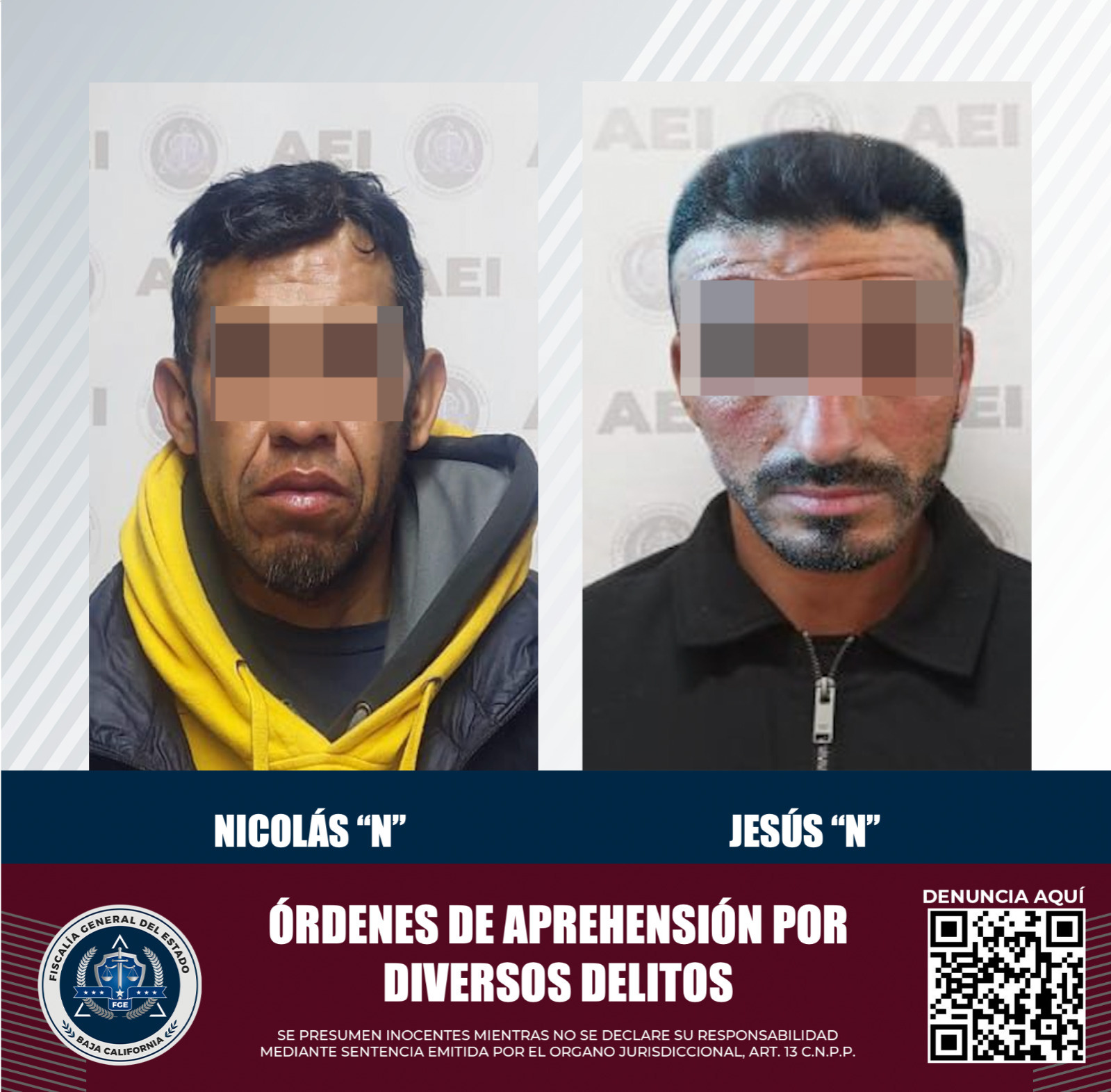 FGE cumplimenta órdenes de aprehensión contra par de prófugos por diversos delitos