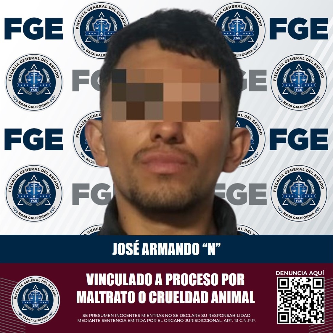 TIJUANA, B.C. La Fiscalía General del Estado informa que José Armando "N" ha sido vinculado a proceso penal por el delito de maltrato o crueldad animal, y permanecerá en prisión preventiva justificada.