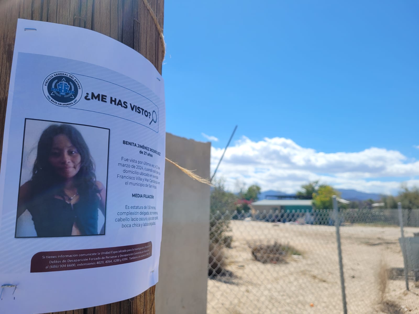 MEXICALI, B.C. Con la finalidad de fortalecer la investigación por la desaparición de Benita Jiménez Rodríguez y Jonathan Alejandro Padilla Medina, elementos de Fiscalía General del Estado desplegaron operativos de búsqueda en vida, en los municipios de Mexicali y San Felipe.