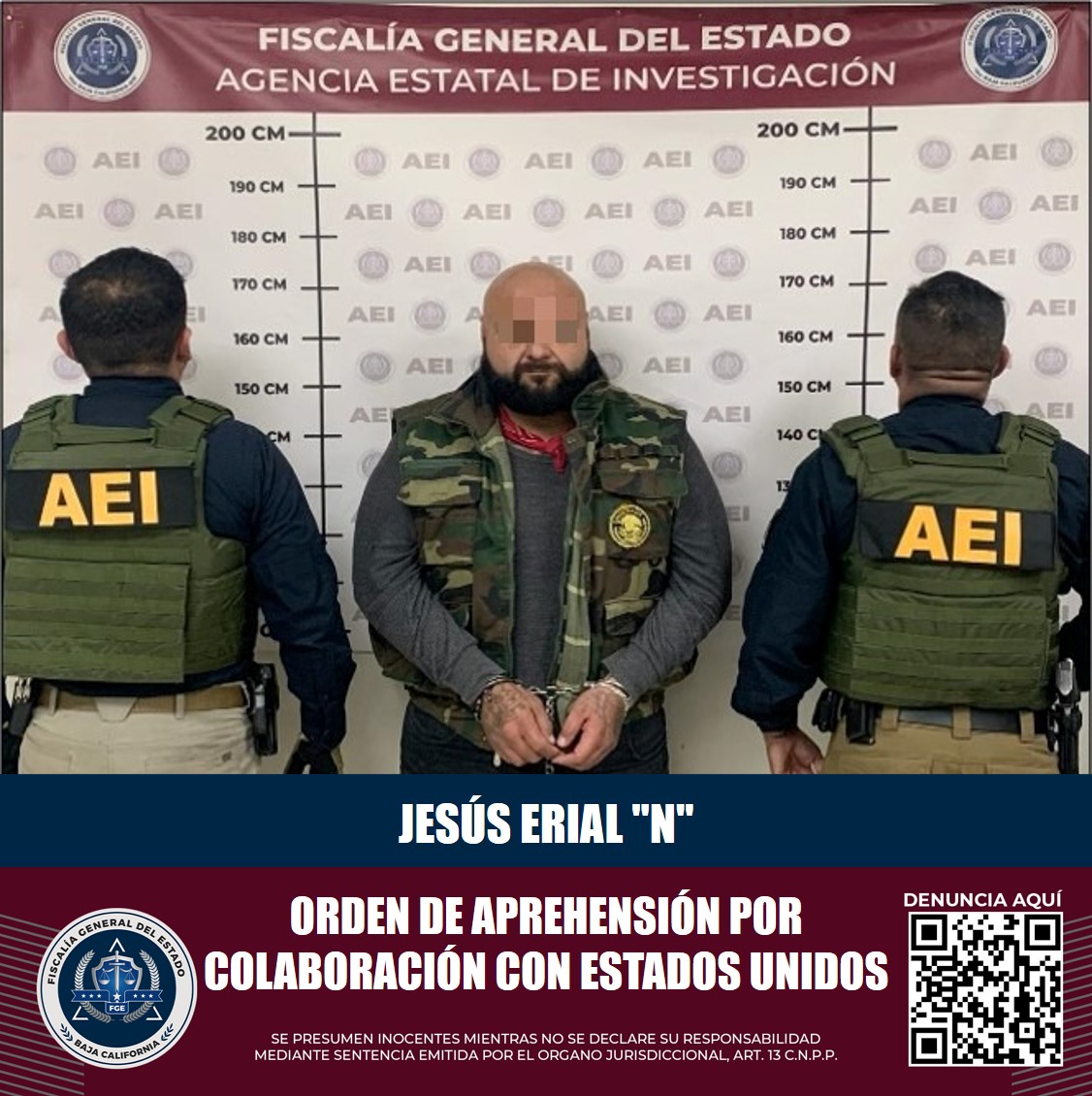 TECATE, B.C. La Agencia Estatal de Investigación (AEI) en Tecate logró la captura de Jesús Erial “N”, de 44 años, quien contaba con orden de aprehensión vigente en el estado de California, Estados Unidos, por los delitos de violación de libertad condicional y violación por armas.