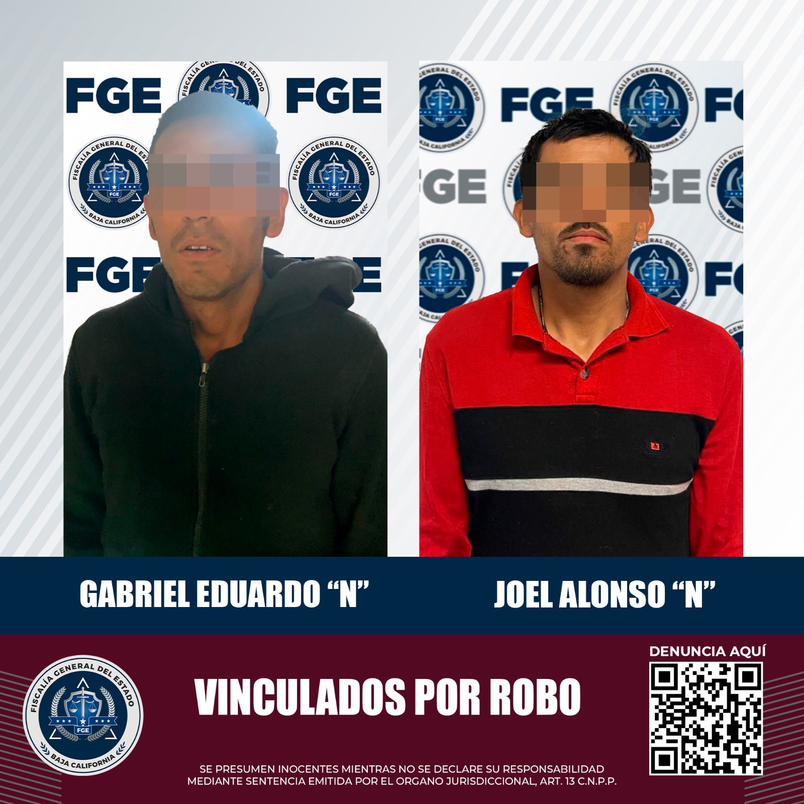 MEXICALI, B.C. La Fiscalía Regional de Mexicali, a través de la Unidad de Investigación de Robos Oriente y la Unidad Foránea de Ciudad Morelos, logró con base a las pruebas presentadas, la vinculación de dos hombres relacionados en los delitos de robo.