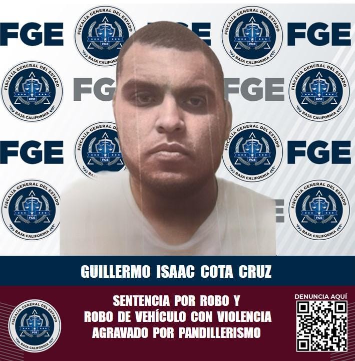 ENSENADA, B.C. La Fiscalía Regional de Ensenada obtuvo sentencia condenatoria contra de Guillermo Isaac Cota Cruz, quien, en febrero de 2023, junto con dos hombres y una mujer, despojaron a una persona de su vehículo y diversos artículos.