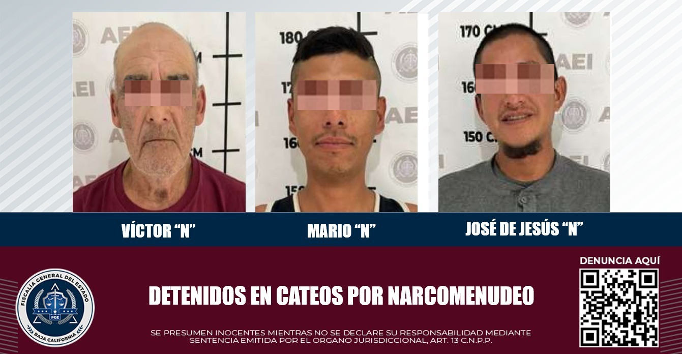 La Fiscalía General Del Estado detiene a tres personas durante cateo por narcomenudeo