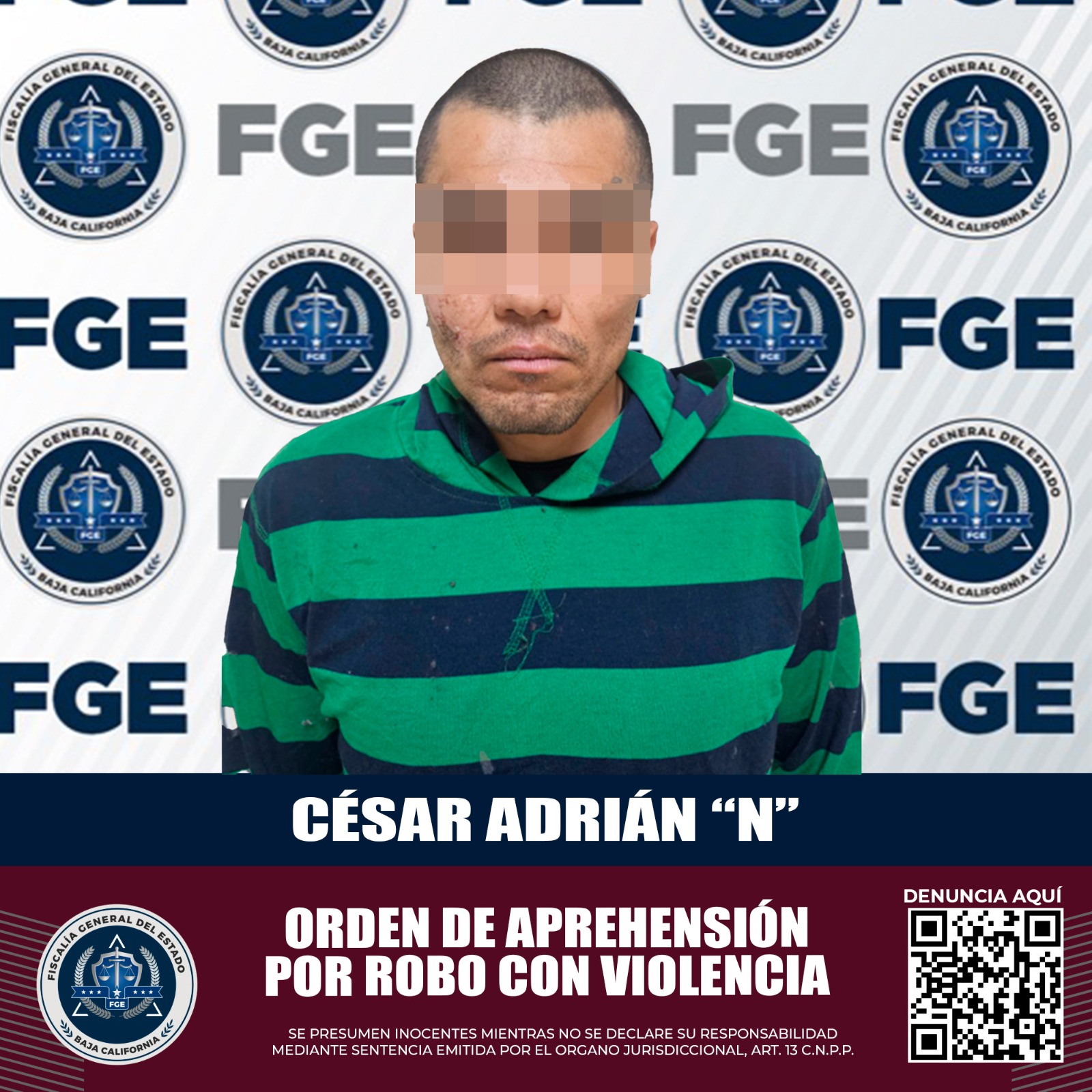 MEXICALI, B.C. Como parte del fortalecimiento al combate del delito de robo, un hombre que era buscado por contar con orden de aprehensión por robo con violencia, fue detenido por elementos de la Agencia Estatal de Investigación (AEI) de la Fiscalía General del Estado.