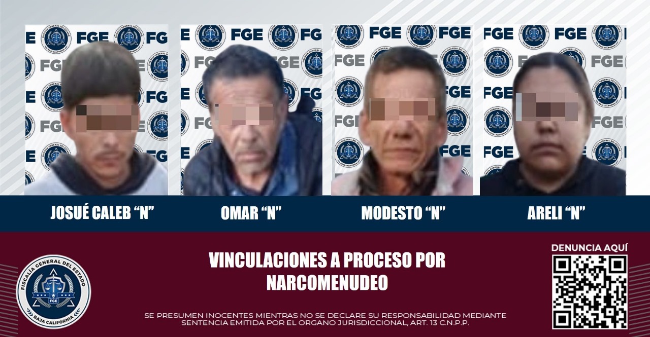 ENSENADA, B.C. Como resultado de acciones de operatividad e investigación, la Fiscalía General del Estado logró la vinculación a proceso de cuatro personas presuntamente implicadas en actividades de narcomenudeo.