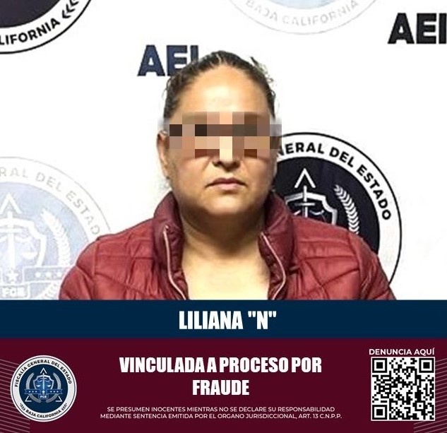 TIJUANA, B.C. La Fiscalía General del Estado informa que, como resultado de una investigación llevada a cabo por el Ministerio Público de la Fiscalía Regional de Tijuana, se logró la vinculación a proceso de una mujer implicada en el delito de fraude.