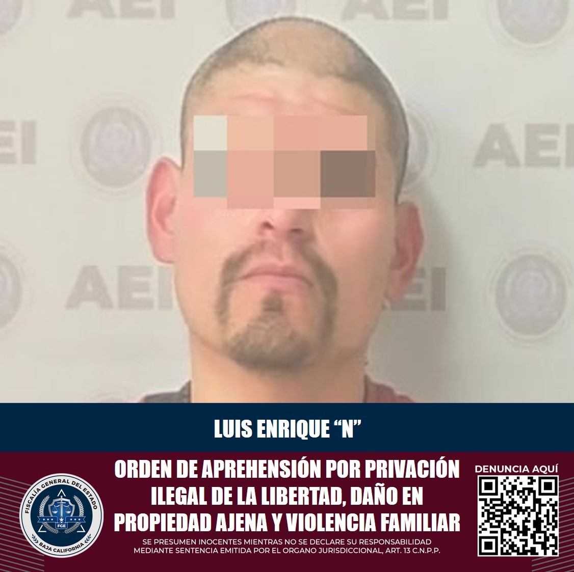 TECATE, B.C. Labores de investigación desarrolladas por elementos de la Agencia Estatal de Investigación de la Fiscalía General del Estado, derivaron en la cumplimentación de una orden de aprehensión en contra de Luis Enrique “N”, de 34 años de edad, acusado de los delitos de privación ilegal de la libertad agravada, daño en propiedad ajena intencional y violencia familiar.